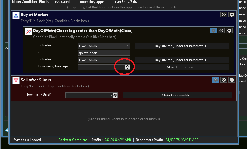 Hello, I want to create a simple strategy of buying on the last day of a certain month, e.g. October, and hold for x number of days.