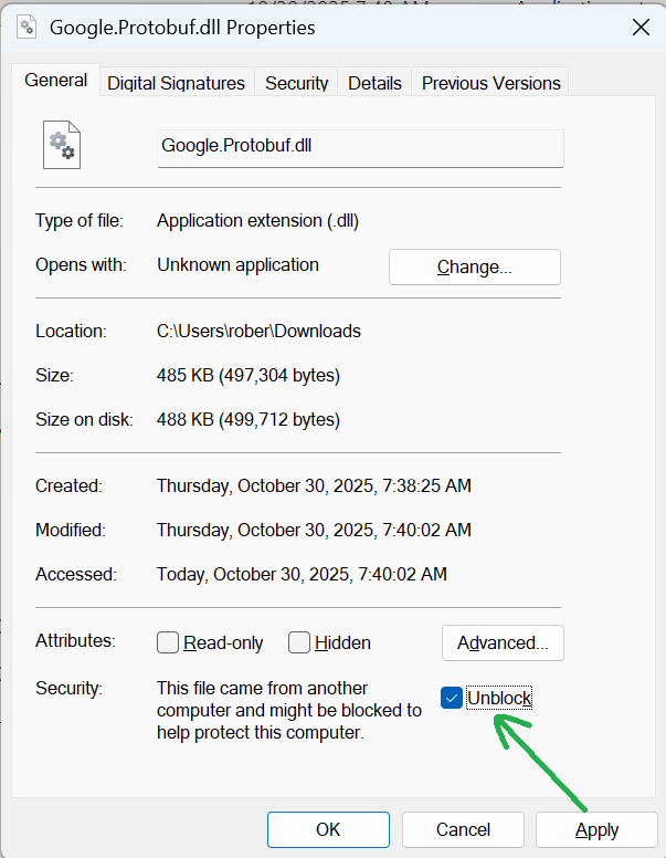 Hello, I would like to revert to version 139. My PC does not allow the Protobuff.dll file. The file has been blocked because it could damage my device.