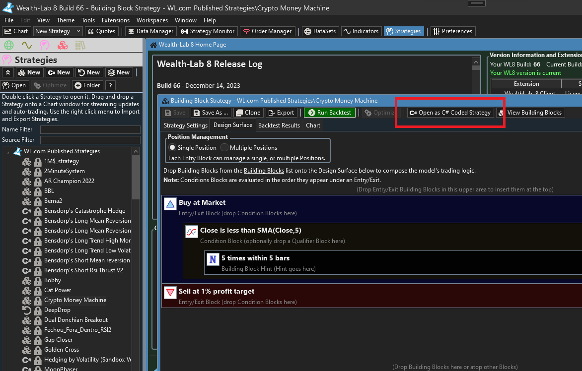 the reference says: 'The see an example of how to use this, open the C# Code for a Building Block Strategy.' I don't see 'Building Block' under Sample or WL.com published strategies. Can you copy and paste it here ?