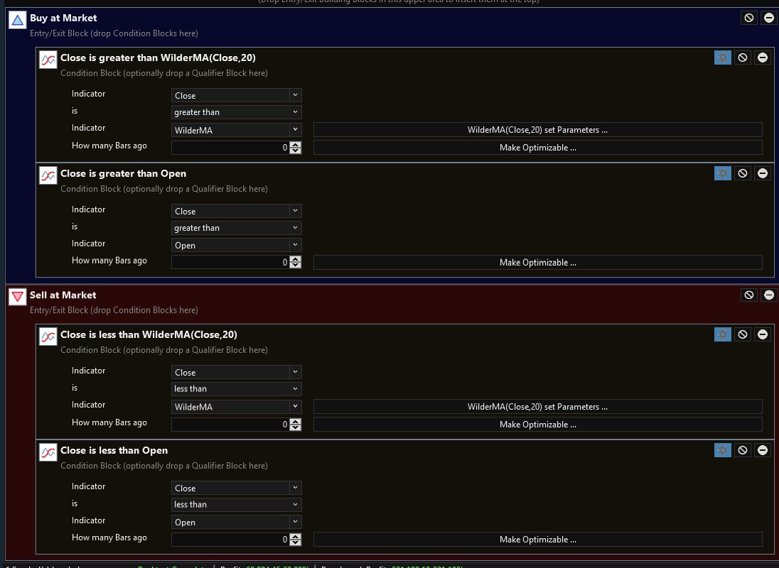 1. your strategy buys at Market with 100% of equity, 1:1 margin.