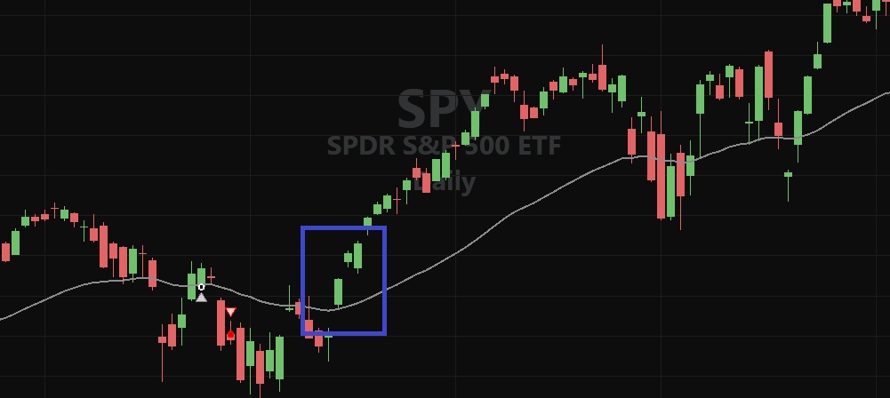 3. the 3 green bars above the moving average in the blue box are numbered 1, 2, and 3.