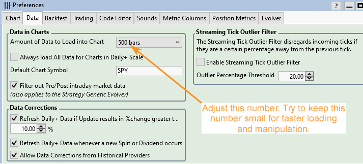 I also recommend checking the first check box to load all data for Daily+ scales. It's typically intraday data with potentially millions of bars that we're really worried about.