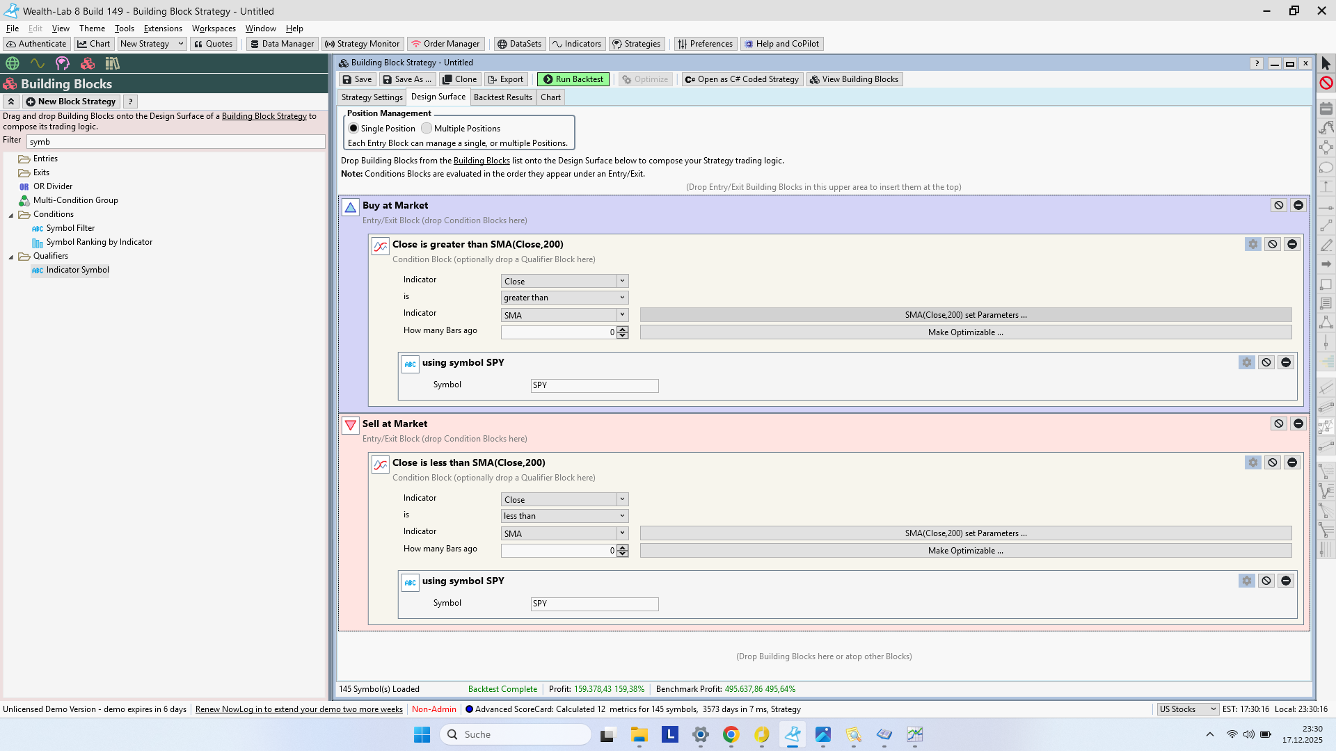 It seems that if this "using symbol" rule is integrated into the entry and exit parameters, only these two rules are applied. If you add further rules, they are ignored in the backtest.