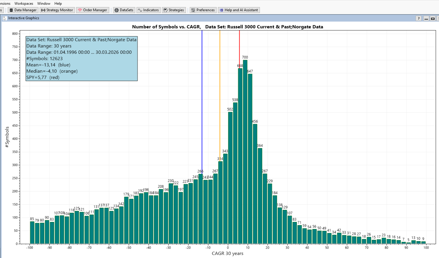 The data comes from the Russel 3000 Current & Past DataSet (provided by Norgate) and contains the last 30 years.