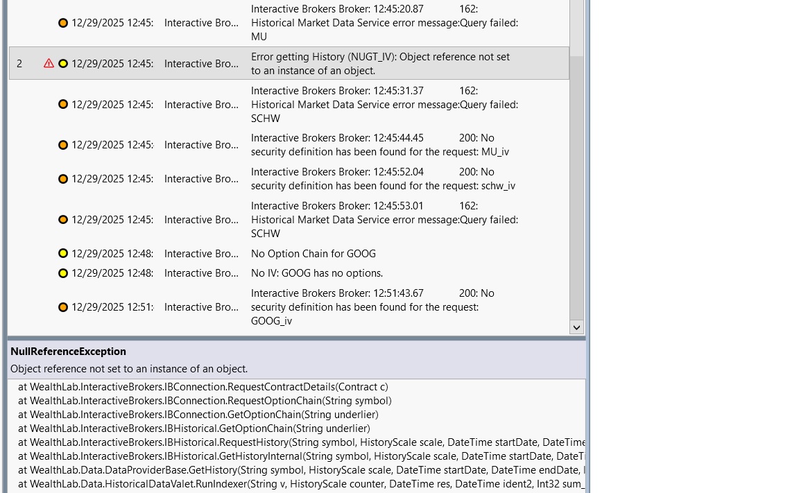 I'm not certain if I broke something on my Wealthlab, or if IBKR just doesn't supply the IV for all tickers...