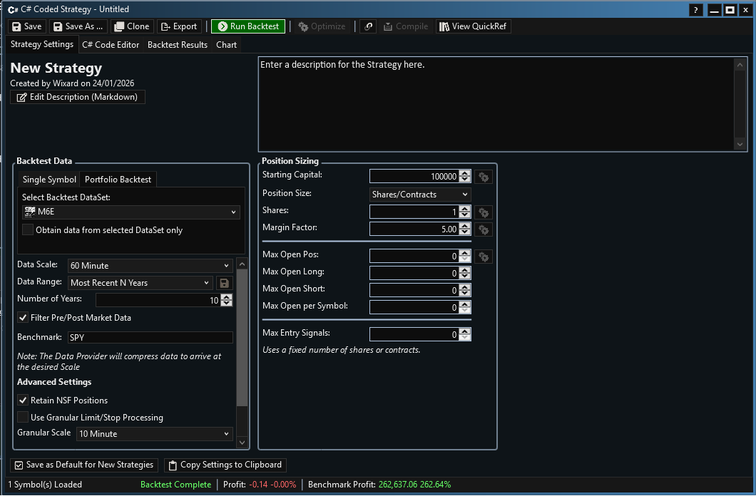 I am just playing around with the strategy tester and saw that for the M6E Futures contract, the results are coming up as 0, although I can see WL8 entered and exited for moves that should have resulted in non 0 PnL. Every decimal move should have resulted in +/- $1.25