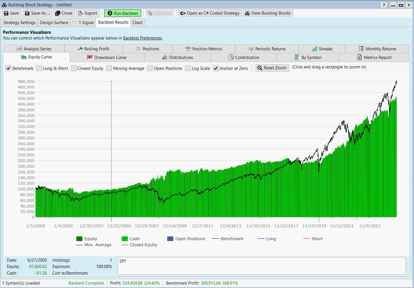 The first thing I realize is that you stated in 2000 and I in 1993. The compound interest effect can significantly increase your wealth over time. Somethin I also realized is that if I put the margin factor to 1.0 it reduces the profit. Less trades, less profits.