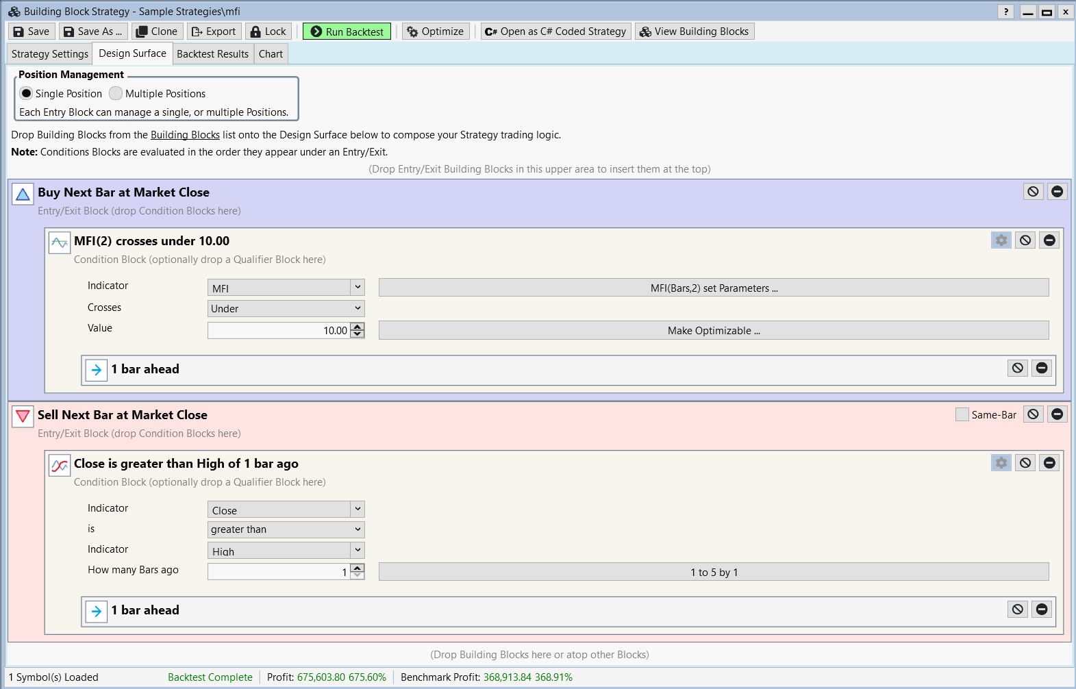 There's a video on Youtube called "MFI Strategy Webinar" that shows a MFI strategy that generates 2M i profits. I can't replicate those results. Am I missing anything?