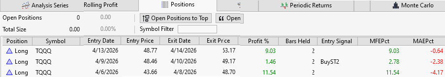The paper compares the outcomes of QQQ, QLD, and TQQQ using the same program code logic, but adapted to each ETF's volatility. All that has changed are the numbers for the profit targets and stop losses. A 2% move in QQQ should result in a 4% rise in QLD, and a 6% gain in TQQQ.