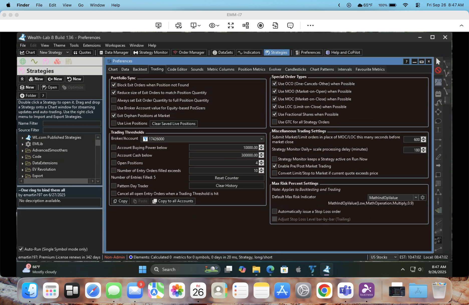 3. Configure... enable At-Close Processing at least 5 seconds before the close, but if you have a broker that's slow to activate orders, you might need to make that 15 or even 30 seconds.