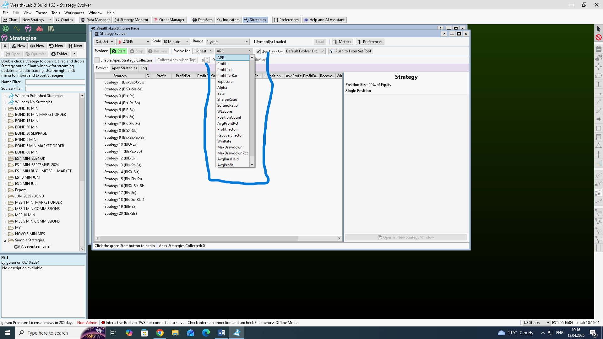 2. Is it possible to include a targeted profit in the preferences of Genetic Evolver before starting to generate strategies? For example, to generate strategies with a profit of three ticks and then to evolve strategies. In the preferences there are only options to choose Profit per bar, profit pct, …. Maybe there is such an opportunity, but I can't find it.