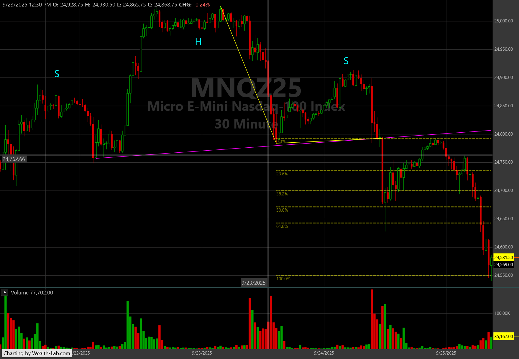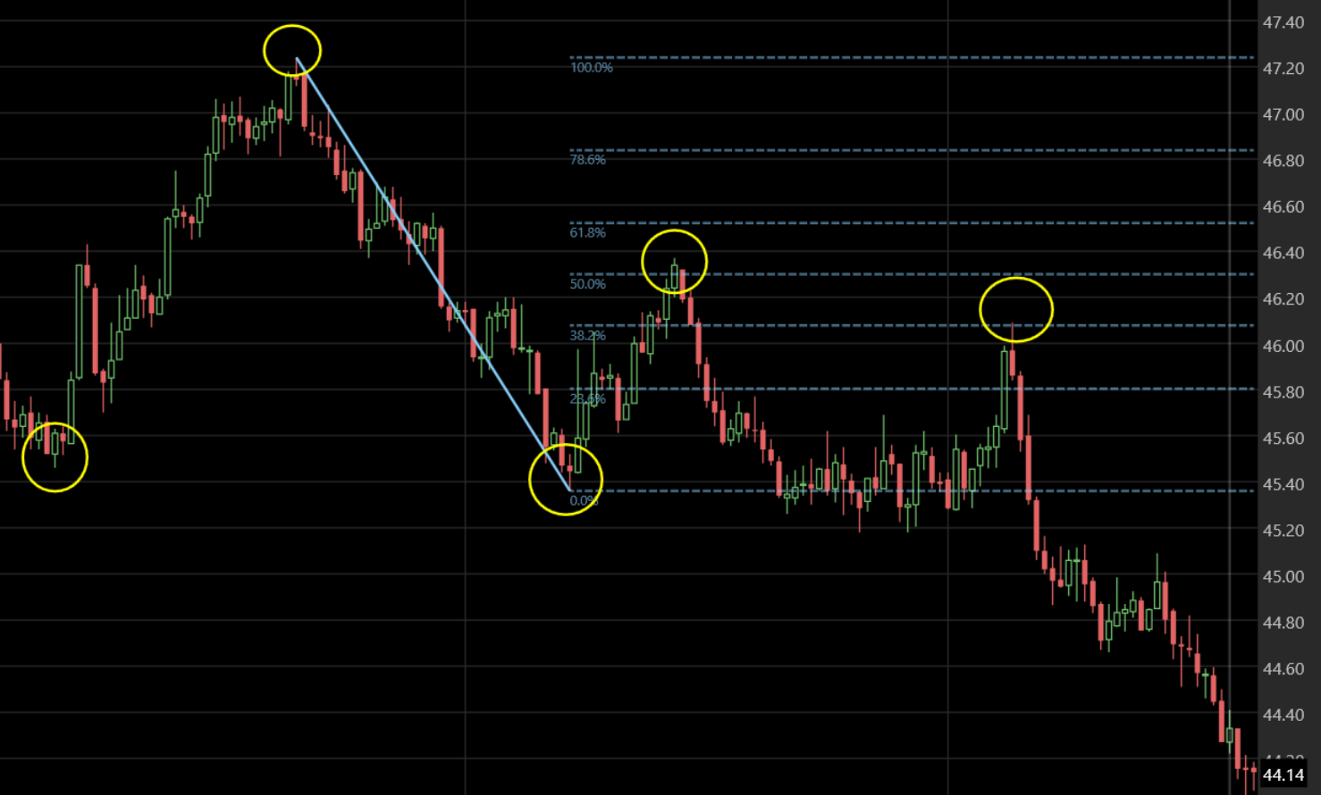 Here is one with a Fib retrace. If only I went short at that 38.2% mark? :(