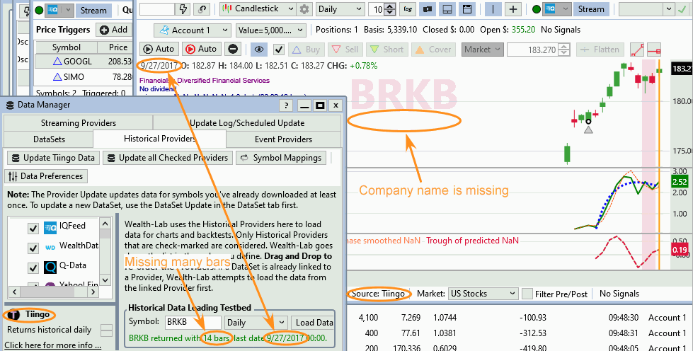 For some reason, the Tiingo provider can only return part of the BRK.B prices. See screenshot below. I've tried other ticker symbols, but they all seem to work okay--strange. I'm running DataExtensions build 36 and WL Build 133.
