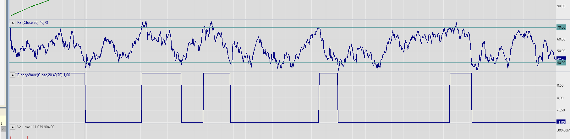 Ex. If RSI falls under 40 it stays 1 until it crosses 80 and then it becomes 1.