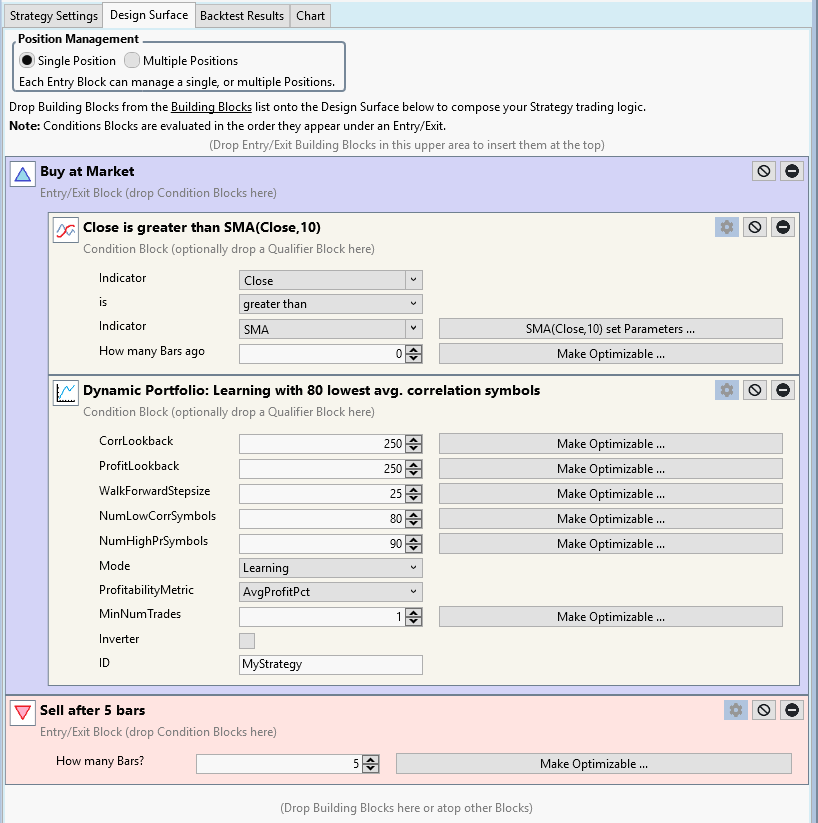 Previously, I had a similar strategy that executed fine in Learning mode. However, I never managed to get any positions in Backtest mode. Now, it seems that no strategy runs at all when this Building Block is used — not even in Learning mode.